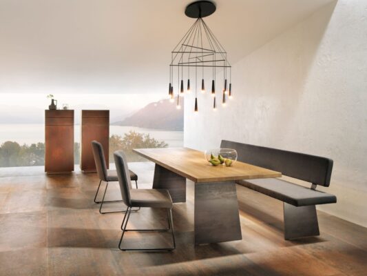 Tisch mit Stühlen und weiteren Möbeln kombinieren