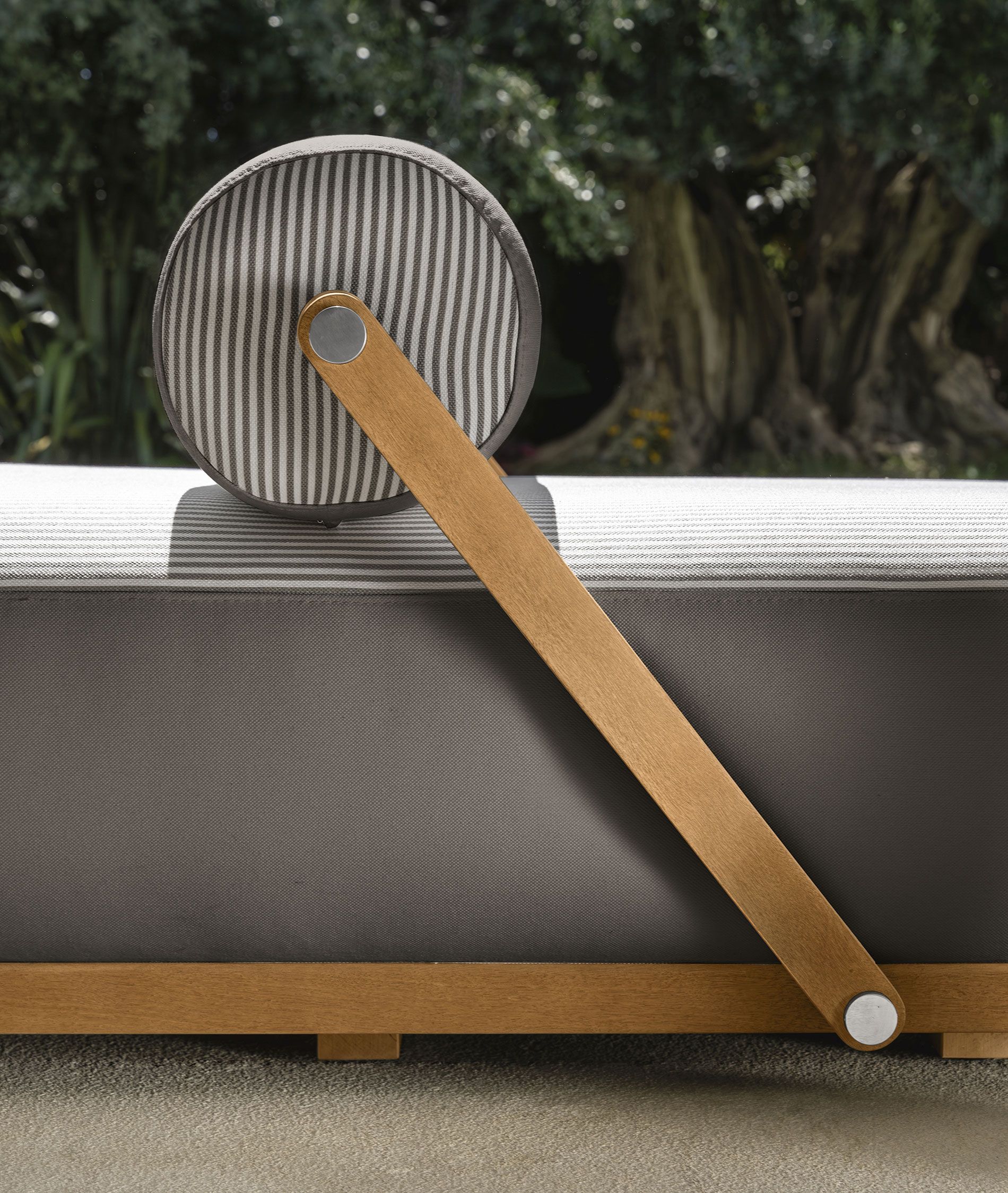 Ein besonderes Highlight der Nami Liege ist die bewegliche Kopfstütze, die sich flexibel in eine elegante Mittelarmlehne verwandeln lässt. Diese innovative Funktion sorgt für vielseitige Nutzungsmöglichkeiten – ob als klassische Sonnenliege oder komfortables Lounge-Möbel.