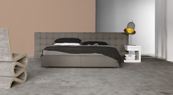 Die Gestaltung folgt dem Prinzip der Zurückhaltung: schlanker Bettrahmen, präzise Konturen, keine überflüssigen Details. Dadurch fügt sich das Bett Dread sowohl in puristische Interieurs als auch in hochwertige, zeitlos eingerichtete Schlafzimmer ein. Die umlaufende, fein gearbeitete Kante am Kopfteil wirkt wie ein Schneiderdetail und verleiht dem Bett den Charakter eines individuell gefertigten Möbelstücks.