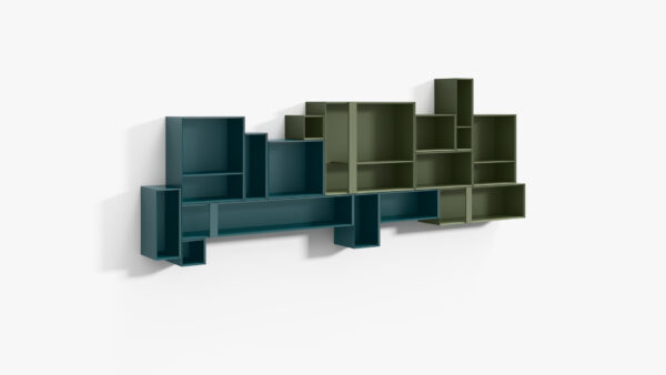 Das Regal Dice von Lyon Beton ist äußerst flexibel einsetzbar. Es kann als Raumteiler, Bücherregal oder als zusätzlicher Stauraum in jedem Raum genutzt werden. Die Kombination aus offenen und geschlossenen Fächern bietet viel Platz für Bücher, Dekoration und andere Gegenstände.