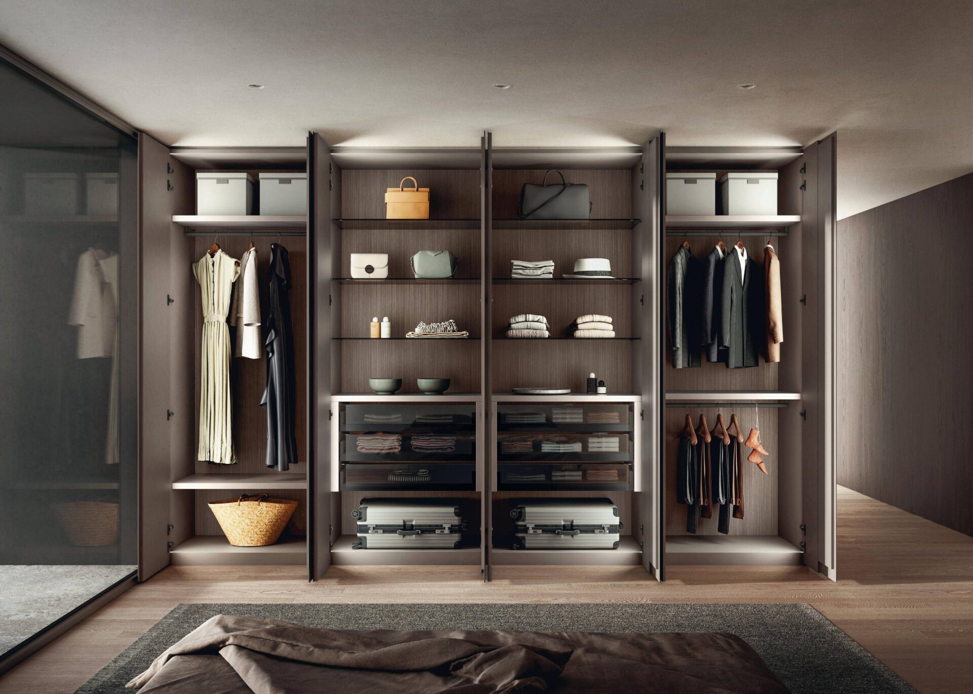 Die gezeigten Schranklösungen verbinden zeitloses Design mit praktischer Funktionalität. Klare Linien, hochwertige Oberflächen und durchdachte Details sorgen für eine elegante Optik, während intelligente Innenaufteilungen den Alltag erleichtern. So entstehen Möbel, die nicht nur gut aussehen, sondern auch echten Mehrwert bieten.