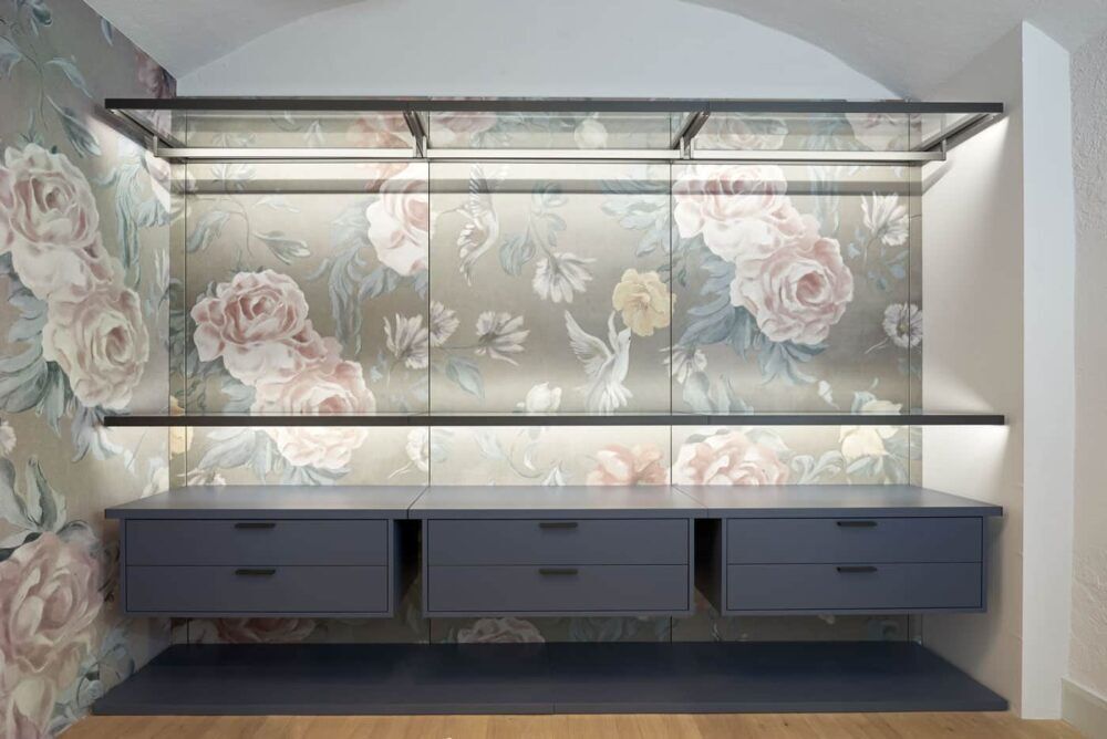 Der begehbare Schrank von Olivieri wurde mit präziser Handwerkskunst und Liebe zum Detail gefertigt. Jedes Stück verkörpert das Engagement von Olivieri für Qualität und zeitloses Design. Hergestellt aus hochwertigen Materialien wie massivem Holz, elegantem Glas und erstklassigem Metall, bietet dieser Schrank eine beeindruckende Haltbarkeit und Langlebigkeit. Die sorgfältig ausgewählten Materialien verleihen ihm eine luxuriöse Ausstrahlung, die Ihren Raum in eine elegante Oase der Ruhe und Eleganz verwandelt.