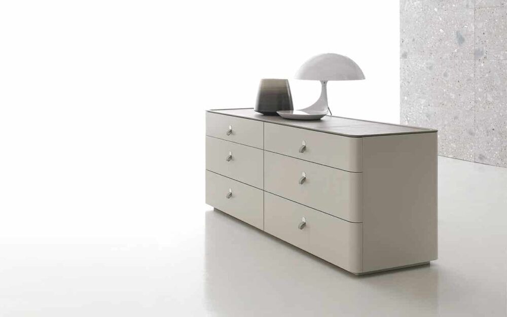 Möchten Sie Ihren Schlaf- und Wohnbereich mit hochwertigen Designermöbeln verschönern, ist die Kommode Kube von Alivar möglicherweise wie für Sie gemacht. Es ist ein minimalistisches Möbelstück mit italienischen Zügen, welches sich in jedem Raum integriert. Die Kommode wirkt elegant und ist zugleich zweckmäßig. Sie können in solch einem Schrank viele Utensilien geordnet verstauen. Um die Schubfächer der Designermöbel zu öffnen, sind elegante Griffe angebracht. Das Besondere an den Griffen ist das, dass sie mit Leder bezogen sind. Ebenso sind die Designermöbel mit eine Acrylsteinplatte mit Lederüberzug versehen. So wirkt der Schrank gleich noch edler und reizvoller. Entscheiden Sie sich für die Einrichtungsgegenstände, bringen Sie Luxus, Eleganz und Raffinesse in den Raum.