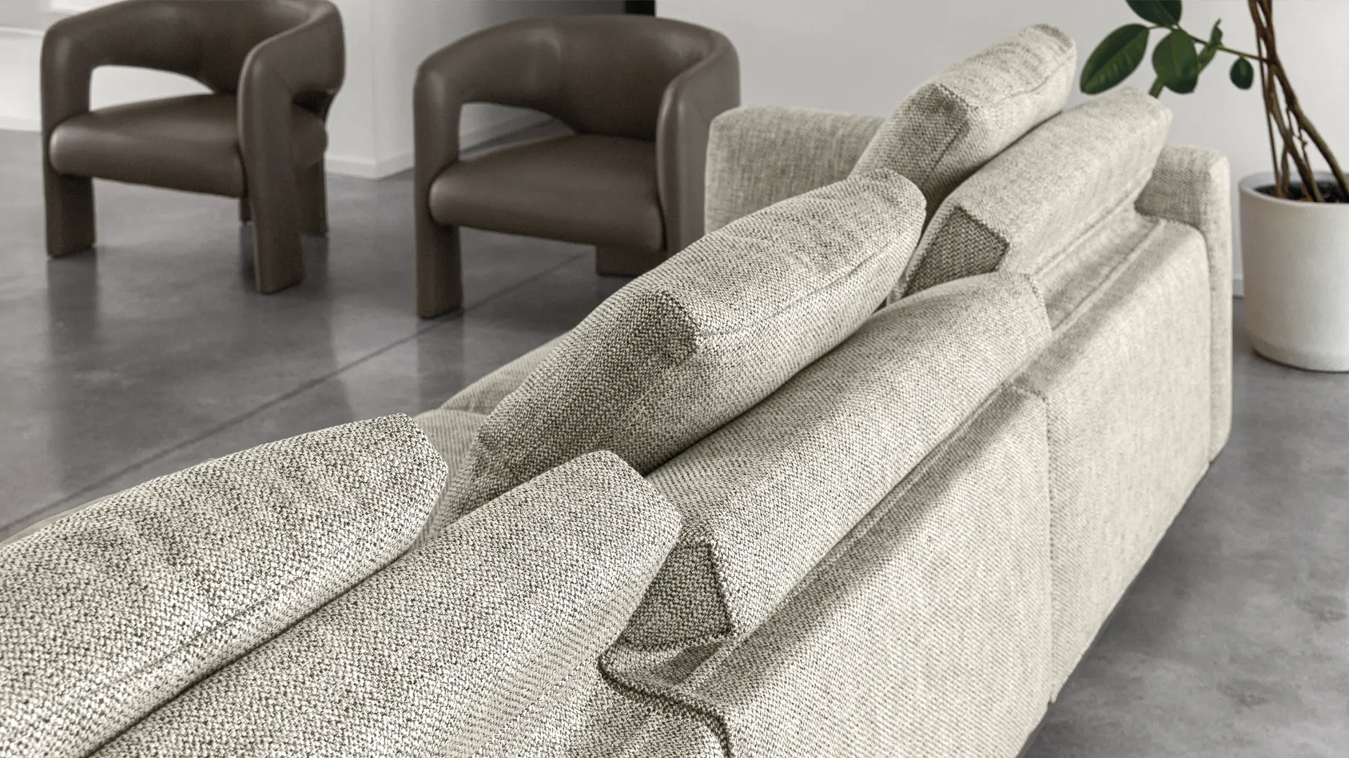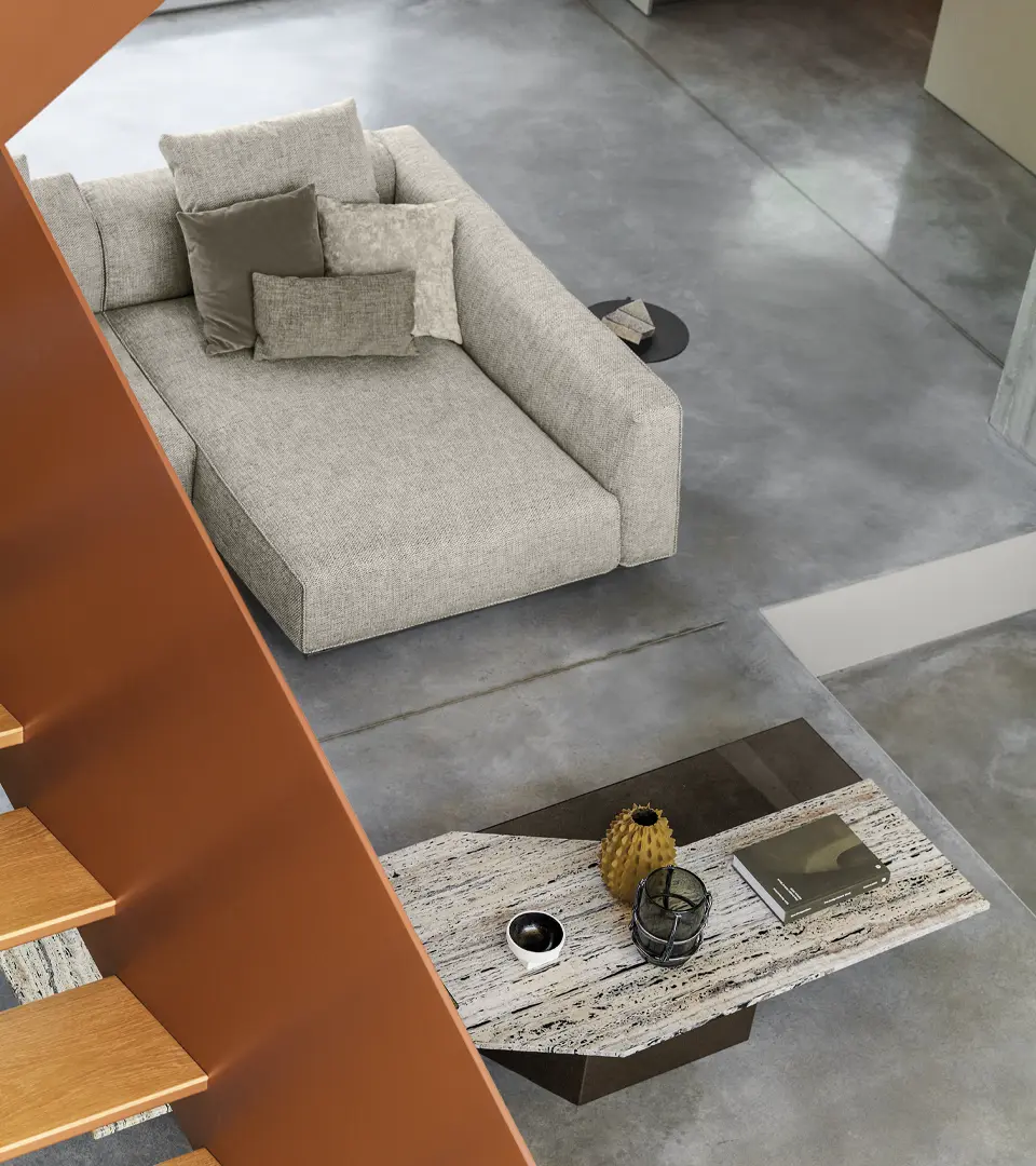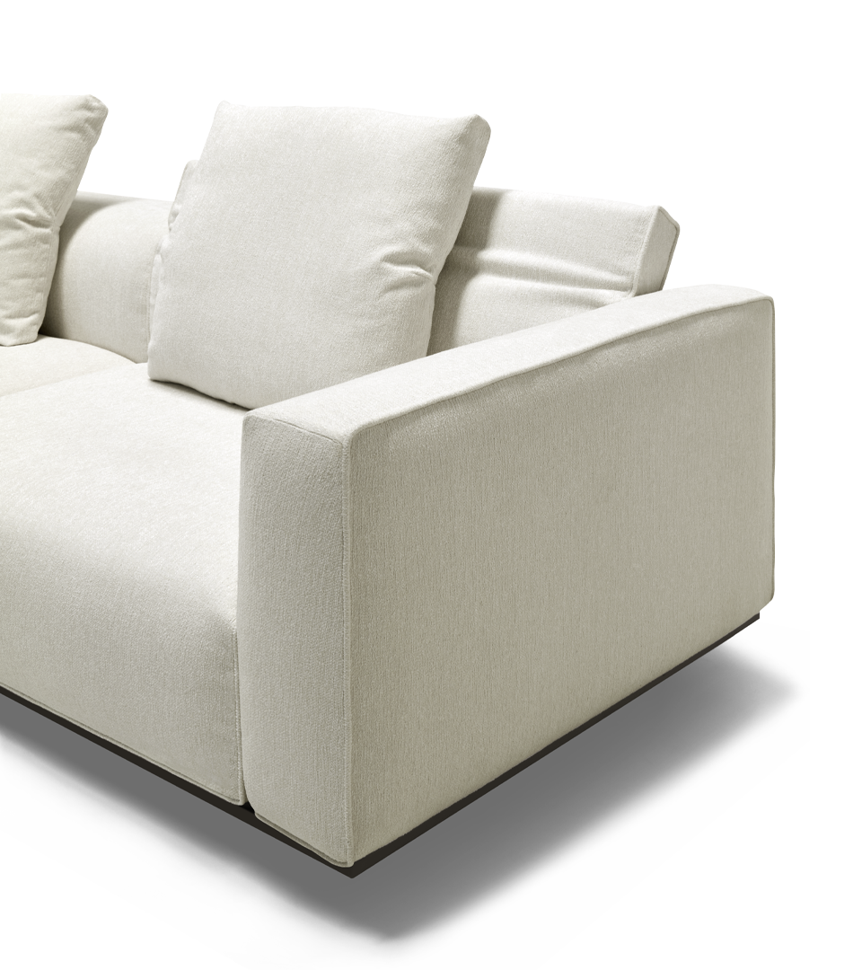 Durch seine präzise Formsprache eignet sich das Sofa ideal für offene Wohnbereiche, repräsentative Wohnzimmer oder hochwertige Interior-Konzepte mit Fokus auf Designmöbel.