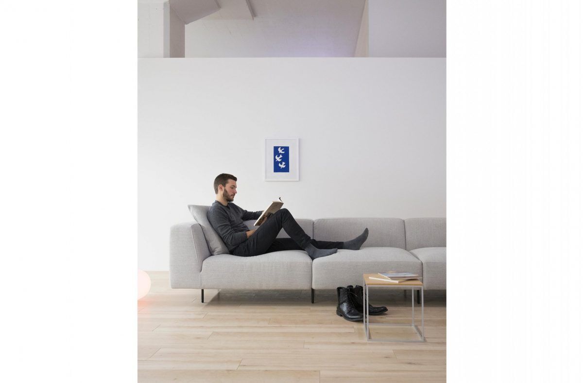 Dank der modularen Bauweise erscheint die Couch trotz großzügiger Sitzfläche leicht und räumlich offen. Die Vielfalt an Stoff- oder Lederbezügen ermöglicht eine individuelle Anpassung an Farb- und Einrichtungs-Konzepte.
