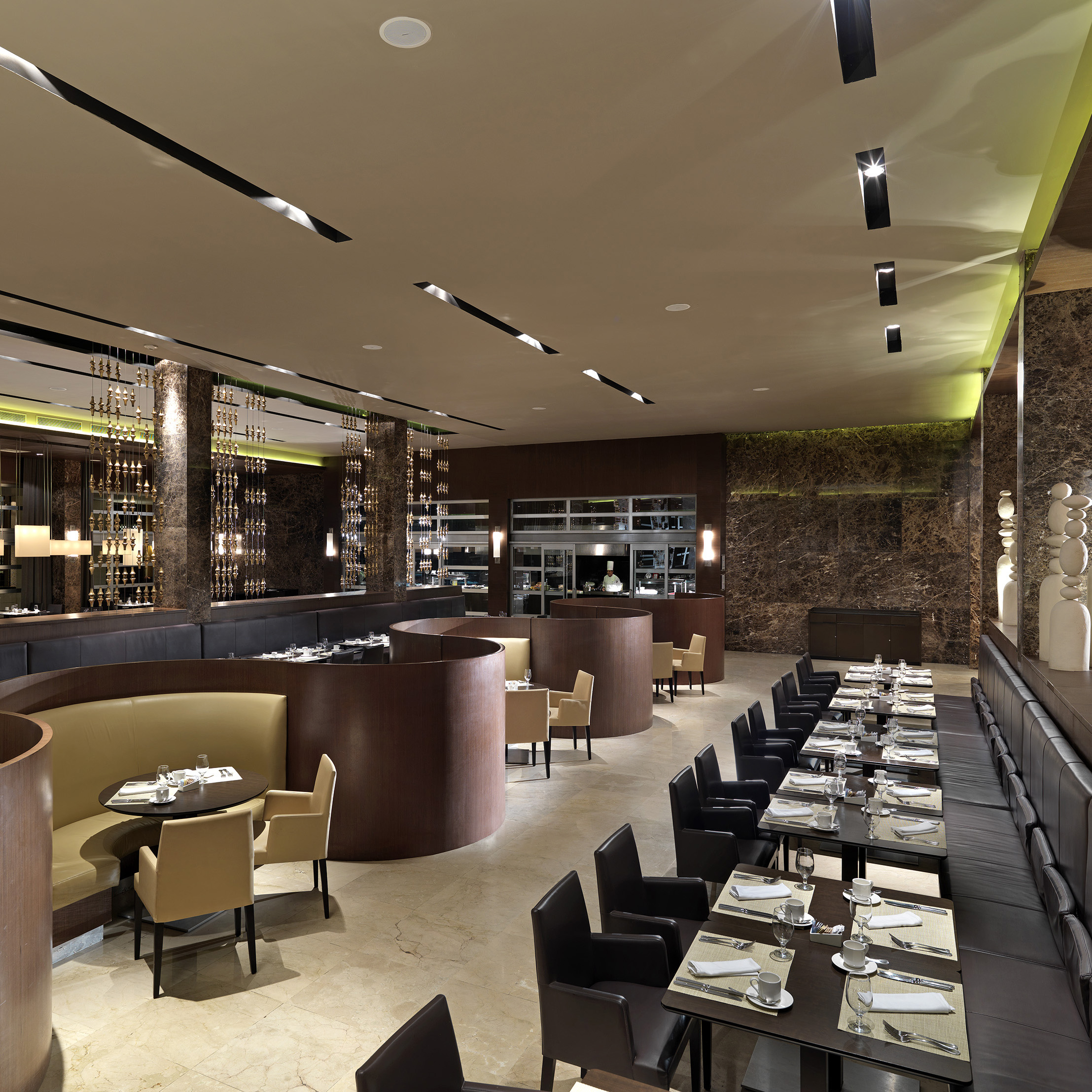 • Hospitality: In Kombination mit runden Tischen und sanften Naturtönen entsteht eine ruhige, einladende Atmosphäre.