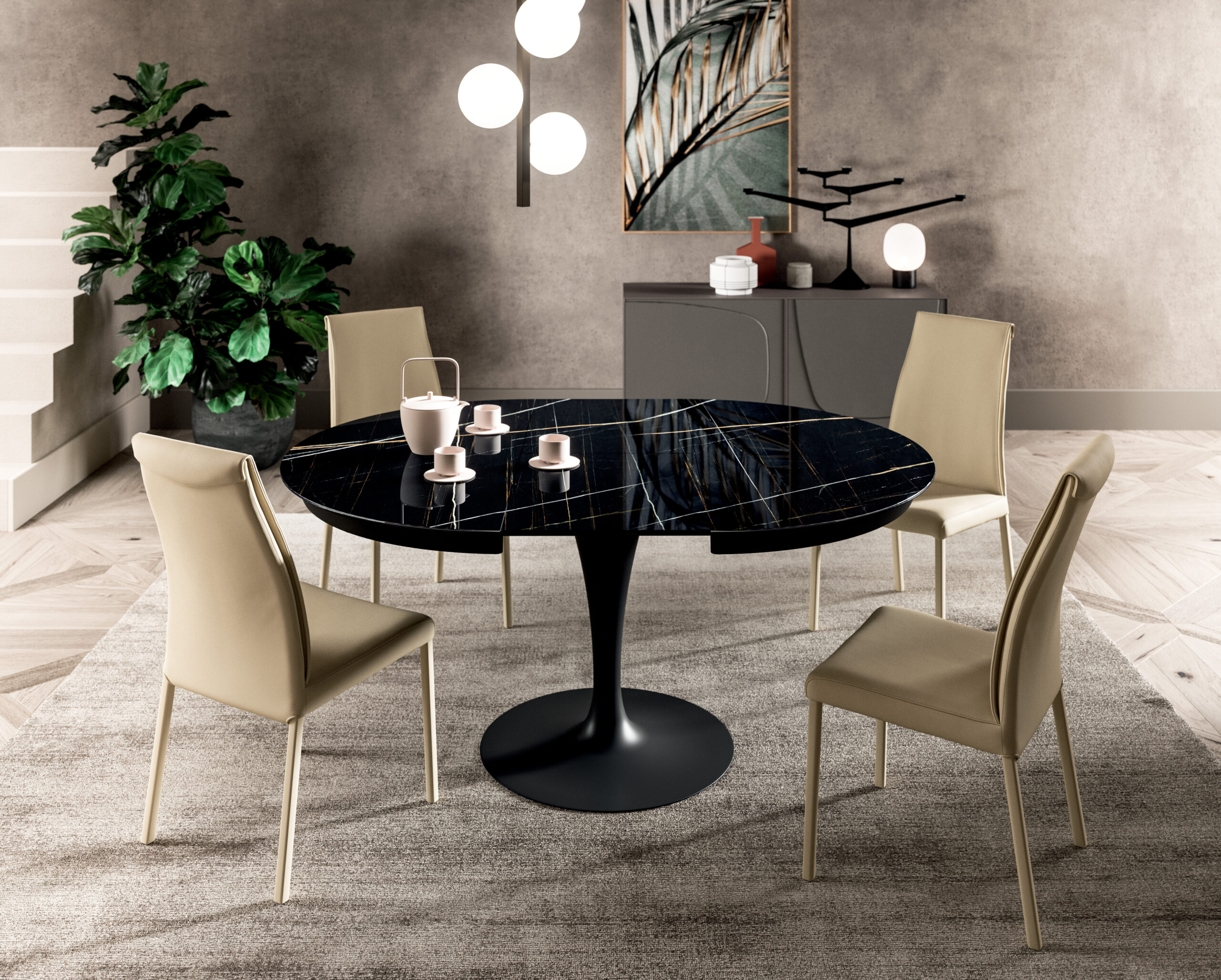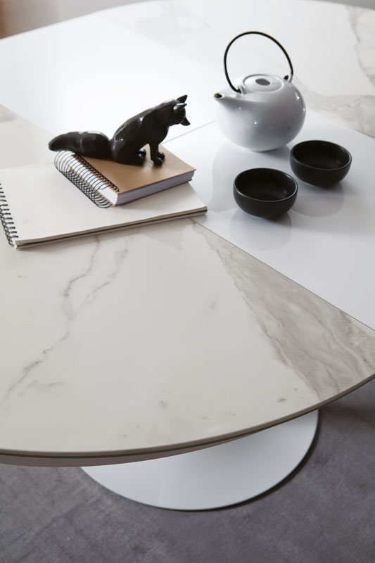 Der Tisch Eclipse von Ozzio ist nicht nur ein Möbelstück, sondern ein wahres Kunstwerk der Funktionalität. Durch intelligente Mechanismen können Sie die Tischplatte mühelos erweitern und Ihren Tisch in einen großzügigen Kunstraum verwandeln. Entfalten Sie Ihre kreativen Ideen und schaffen Sie Platz für gesellige Zusammenkünfte, Ausstellungen oder besondere Momente. Der Tisch Eclipse bietet Ihnen die Freiheit, Ihren Raum nach Ihren individuellen Bedürfnissen zu gestalten.