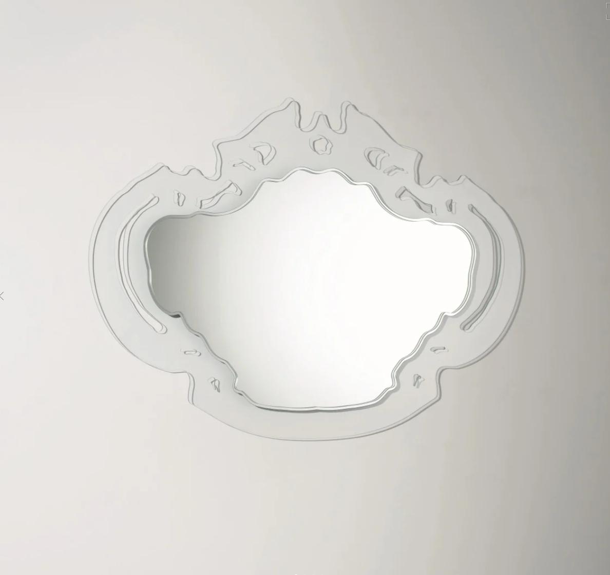 Die Firma Glas Italia aus Macherio ist weltweit führend in der Bearbeitung von Kristallglas. Beim Rokokò-Spiegel wird diese Expertise in jedem Detail sichtbar: