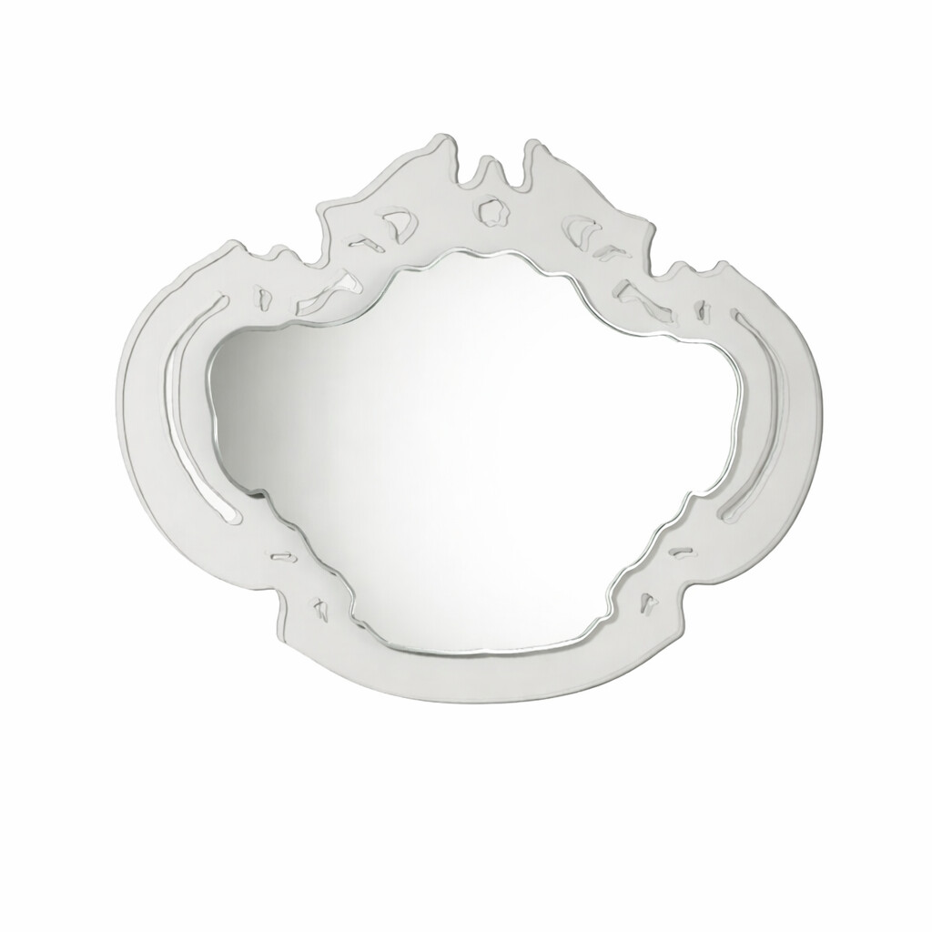 Der Glas Italia Wandspiegel Rokokò, entworfen von der Design-Legende Nanda Vigo, ist eine Hommage an die Opulenz des 18. Jahrhunderts – radikal übersetzt in die Klarheit der Moderne. Während klassische Rokoko-Spiegel oft schwer und dominierend wirken, bricht dieses Objekt durch seine vollkommene Transparenz die Grenzen des Raumes auf. Es ist kein bloßer Gebrauchsgegenstand, sondern ein Lichtobjekt, das Architektur und Reflexion miteinander verschmelzen lässt.